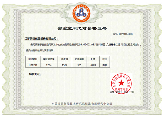 附錄1:實(shí)驗(yàn)室間比對(duì)合格證書(shū)(六溴環(huán)十二烷)