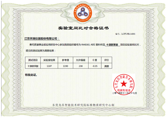 附錄3:實(shí)驗(yàn)室間比對(duì)合格證書(shū)(十溴聯(lián)苯醚)
