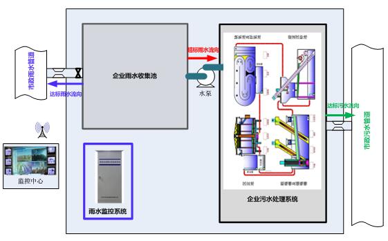 企業雨水通過專用雨水管路匯總到企業雨水收集池,在雨水收集池的總排放口監測雨水流量。