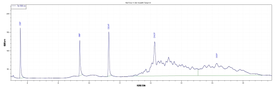 選取某品牌快遞包裝袋進行鄰苯二甲酸酯的快篩測試,譜圖和檢測結果如下: